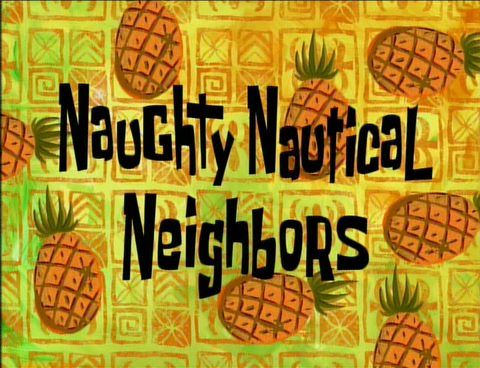 Title card for the SpongeBob SquarePants season 1 episode "Naughty Nautical Neighbors".